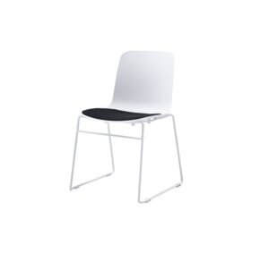 Black visitor chair with a black sled base, PP shell seat, and fabric seat pad for added comfort. Ideal for classrooms and training spaces, backed by a 2-year warranty.
