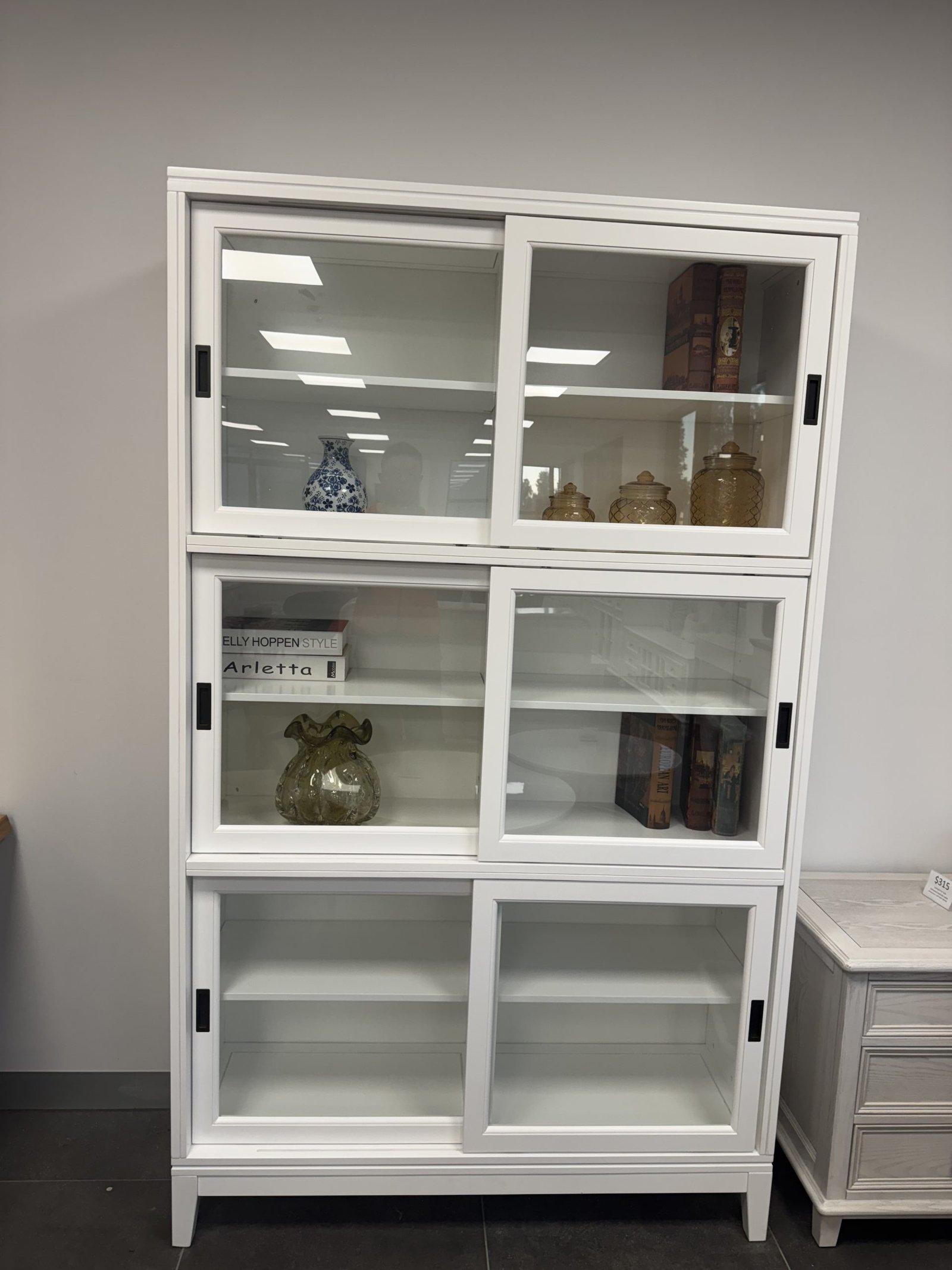 - Design: Three-tiered display with sliding glass doors for a modern, open look