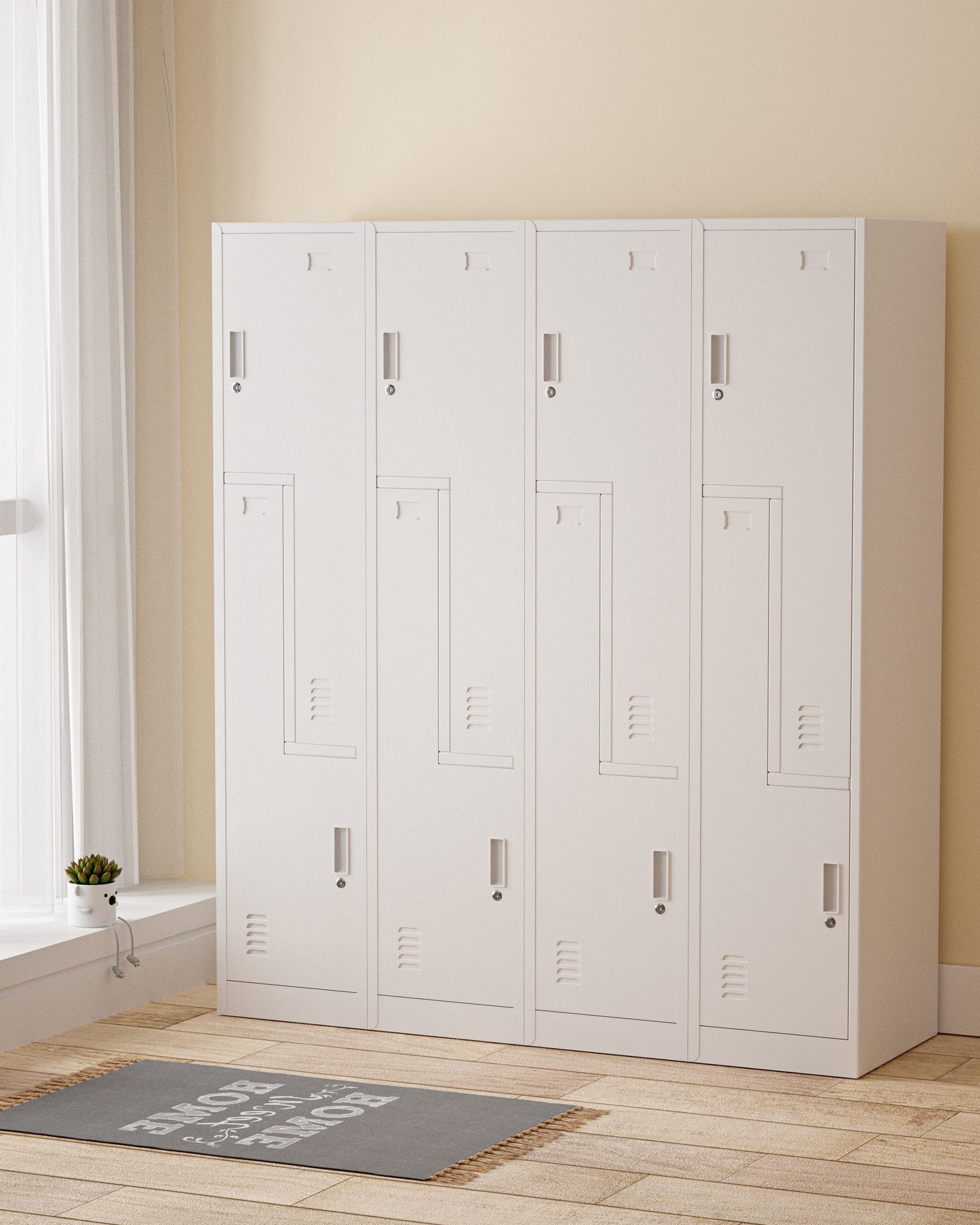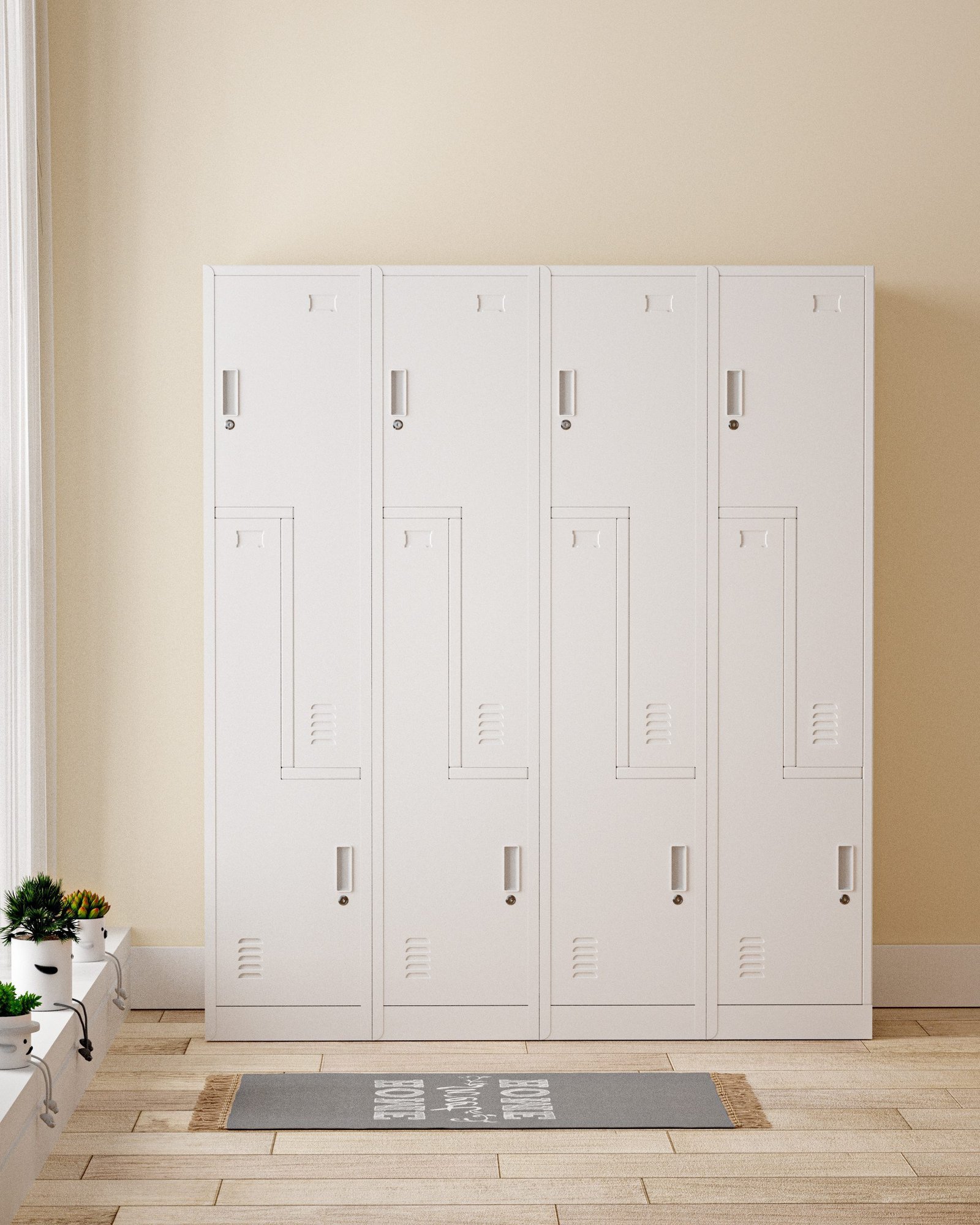 METAL STEP LOCKER – 8 DOOR (BANK OF 4) WITH CAM LOCK, LIGHT GREY