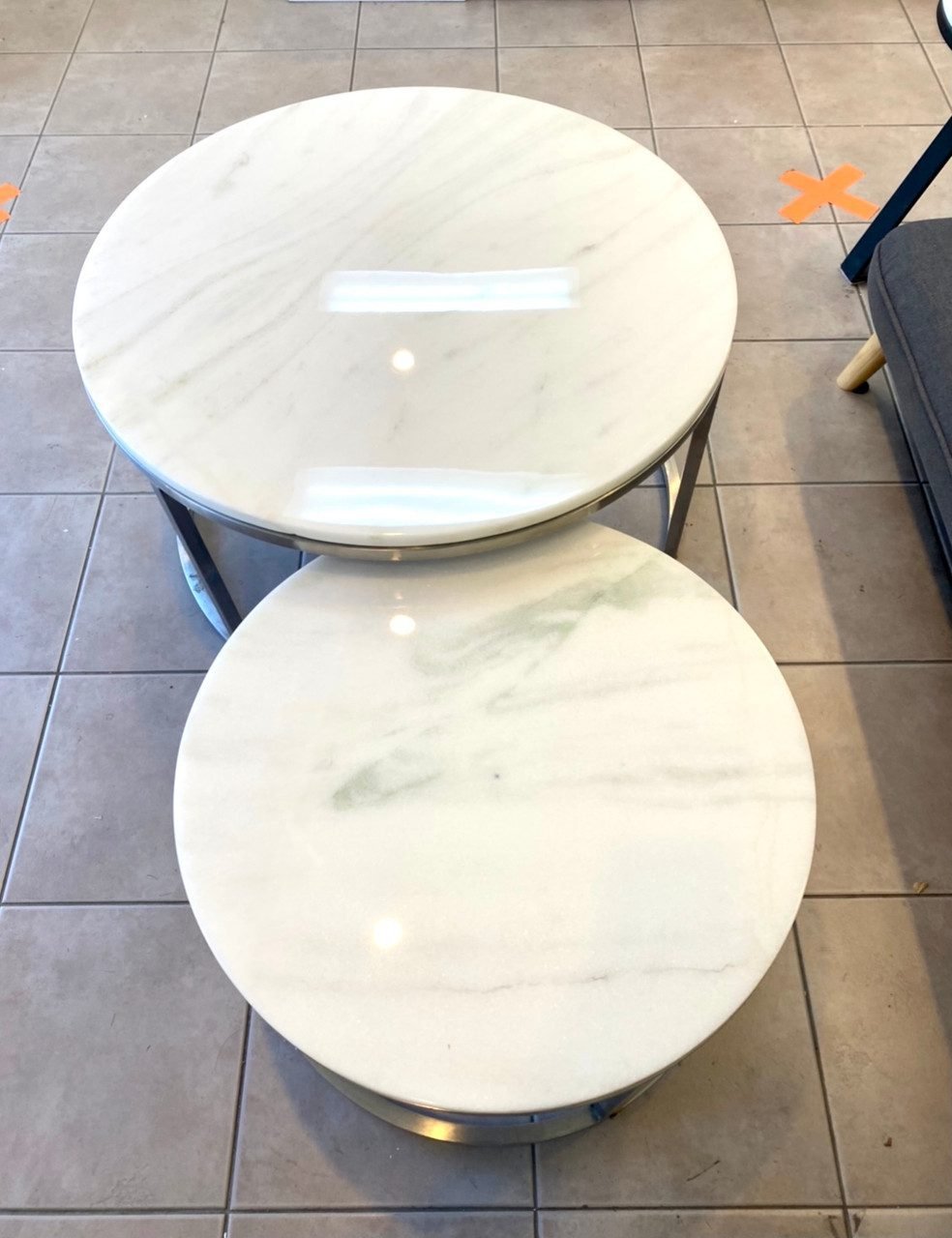 Set/2 tables are made from natural marble with white tones