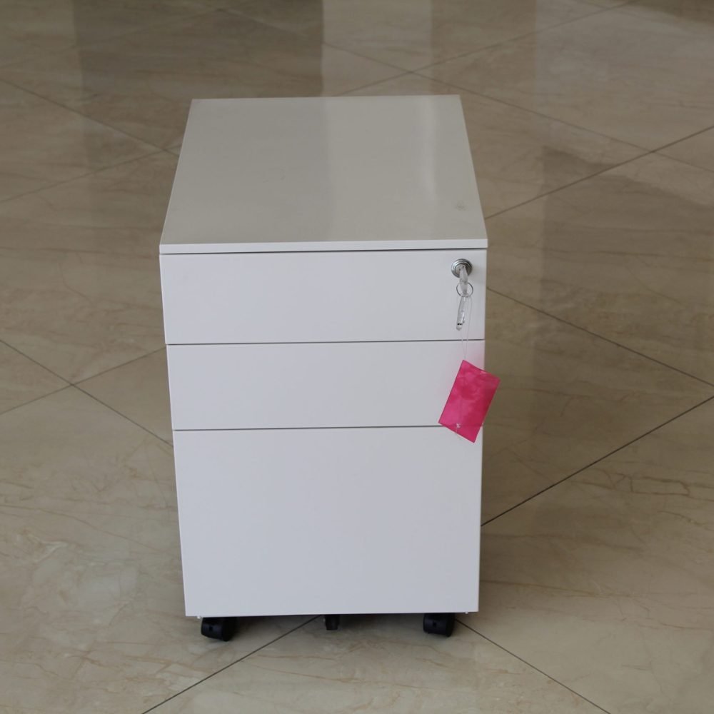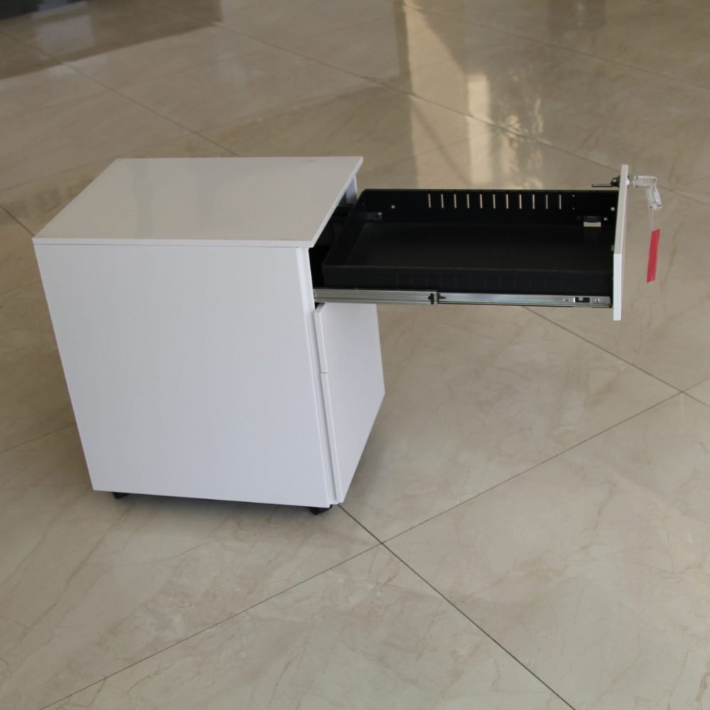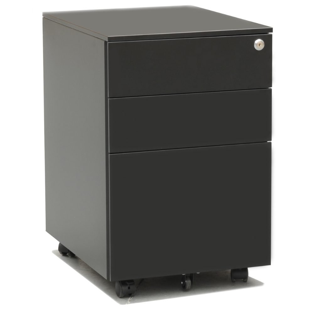 Compact mobile pedestal with 1 file drawer, 2 personal drawers, a pen tray, and a 5th wheel for stability. Finished in White or Black with a durable powder-coated finish. Dimensions:390x520x600 mm. Warranty: 5 years.